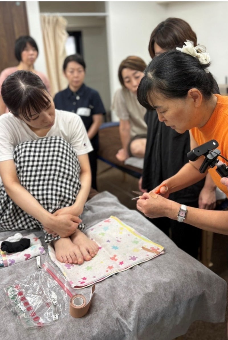また、巻き爪の方への対応としてテーピングの実習も行いました。